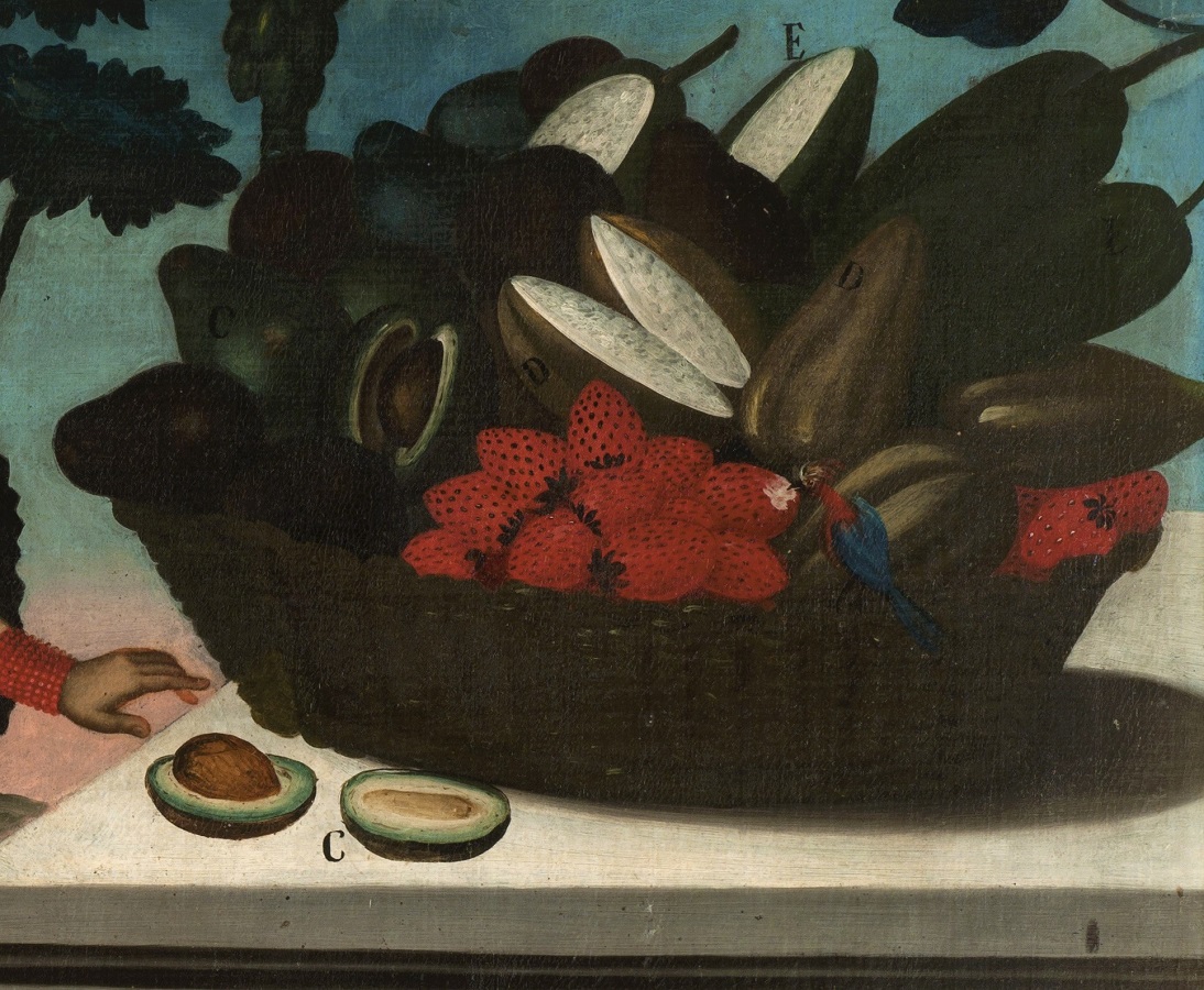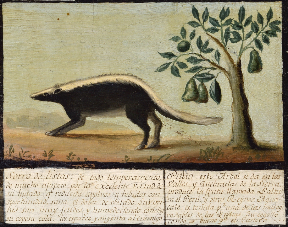El aguacate también aparece dentro del Quadro de Historia Natural, Civil y Geográfico del Reyno de Perú (1799), donde se dibuja un árbol de manera sencilla ilustrando un tronco, ramas y frutos, junto con un animal llamado Sorro de listas. La descripción del palto dice: