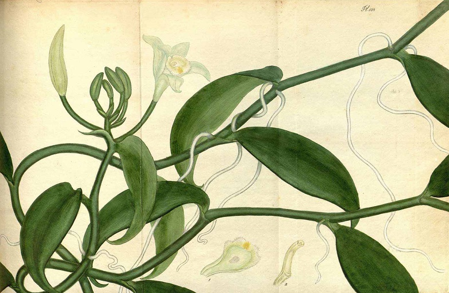 Acuarela de bainilla (sic) de la expedición de Mutis. Signatura DIV. III A-536 [XXI]http://www.rjb.csic.es/icones/mutis/paginas/laminadibujo.php?lamina=908.