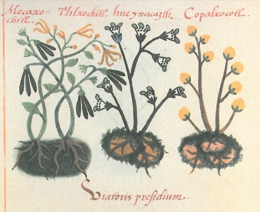 La primera representación de la vainilla (y de una orquídea Mesoaméricana[XI]Gómez, L. 2008. Vanilla planifolia, the first Mesoamerican orchid illustrated and notes on the la Cruz-Badiano Codex. Lankesteriana 8(1): 81-88.) aparece en el Códice de la Cruz-Badiano en 1553, obra del médico indígena Martin de la Cruz, donde menciona que esta planta junto con otras tres producen un “hechizo” que mantiene a los viajeros alejados de daños, como un talismán o amuleto.