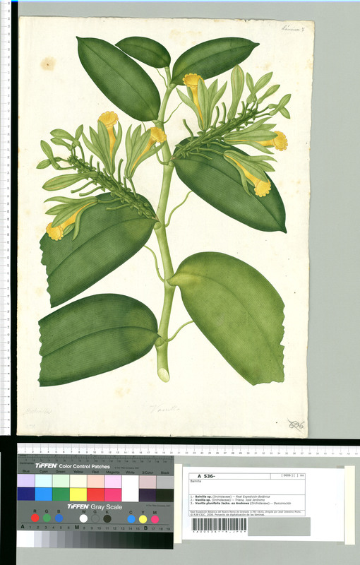 Acuarela de bainilla (sic) de la expedición de Mutis. Signatura DIV. III A-536 [XXI]http://www.rjb.csic.es/icones/mutis/paginas/laminadibujo.php?lamina=908.